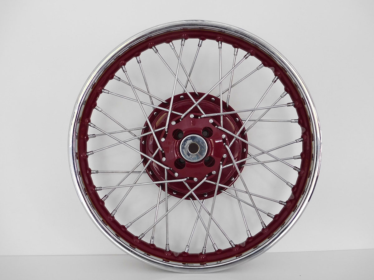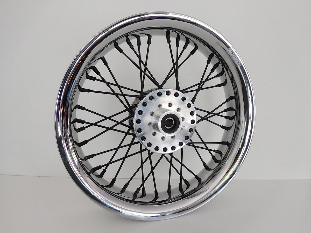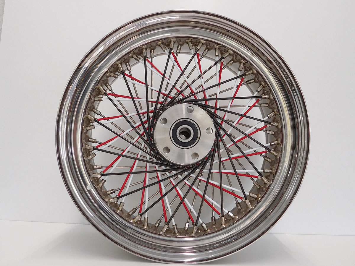 Der Zusammenbau eines Speichenrades geschieht in der Regel nach Vorgabe des Originals und ist größtenteils reine Handwerkskunst – mal abgesehen von der Bestückung in der Erstausrüstung. Sonderspeichungen durch Umbauten mit abweichender Felgengröße und Felgenbreite können das Speichenbild deutlich verändern. So werden z. B. klassische 40-Loch Harley-Räder durch 80-Loch-Räder modifiziert. Nachdem das Rad eingespeicht ist, wird es gespannt und zentriert.