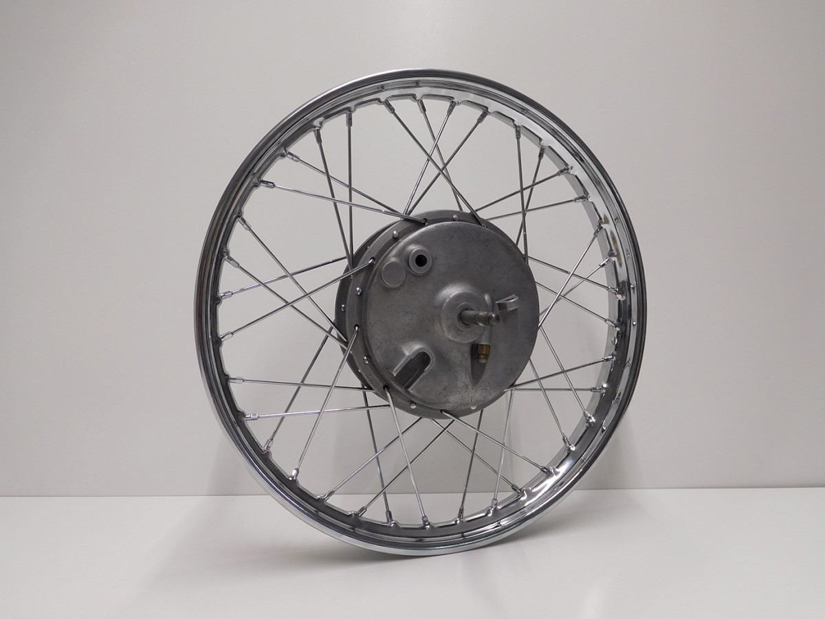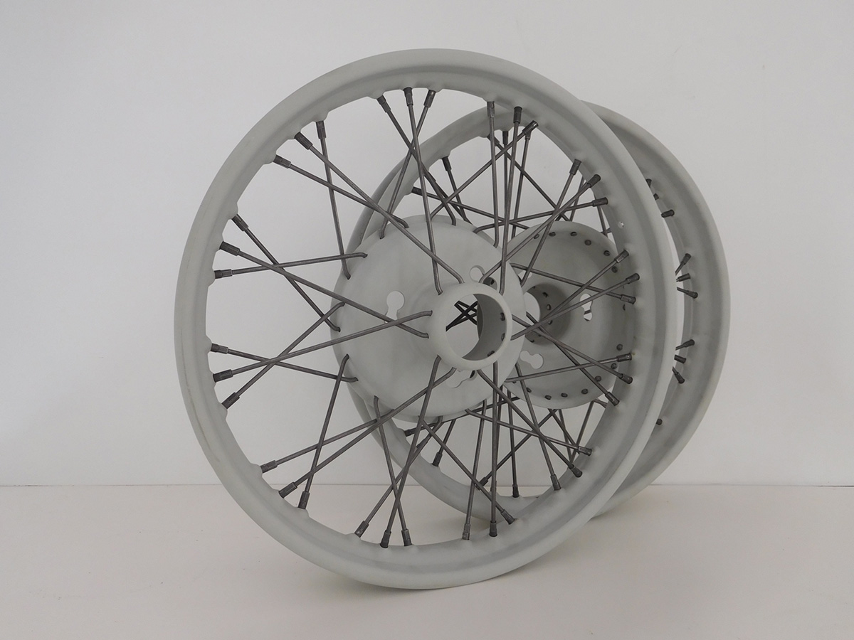Spoke wheels were around as early as ancient Egypt, over 3000 years ago. As time went on, they gradually replaced disk wheels. The design of the first spoke wheels was such that the spokes were under pressure, unlike modern wheels. As a result the spoke had to very stable (today's alloy wheel). This changed at the end of the 19th century with the introduction of the tangential spokes. In this principle, the spokes are under tension. Since the material used is far more stable under tension than under pressure, this meant that lighter designs were possible. As a result, it was possible to make simple and more filigree spoked wheels.
