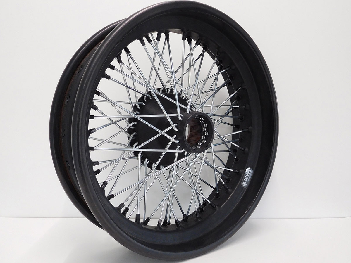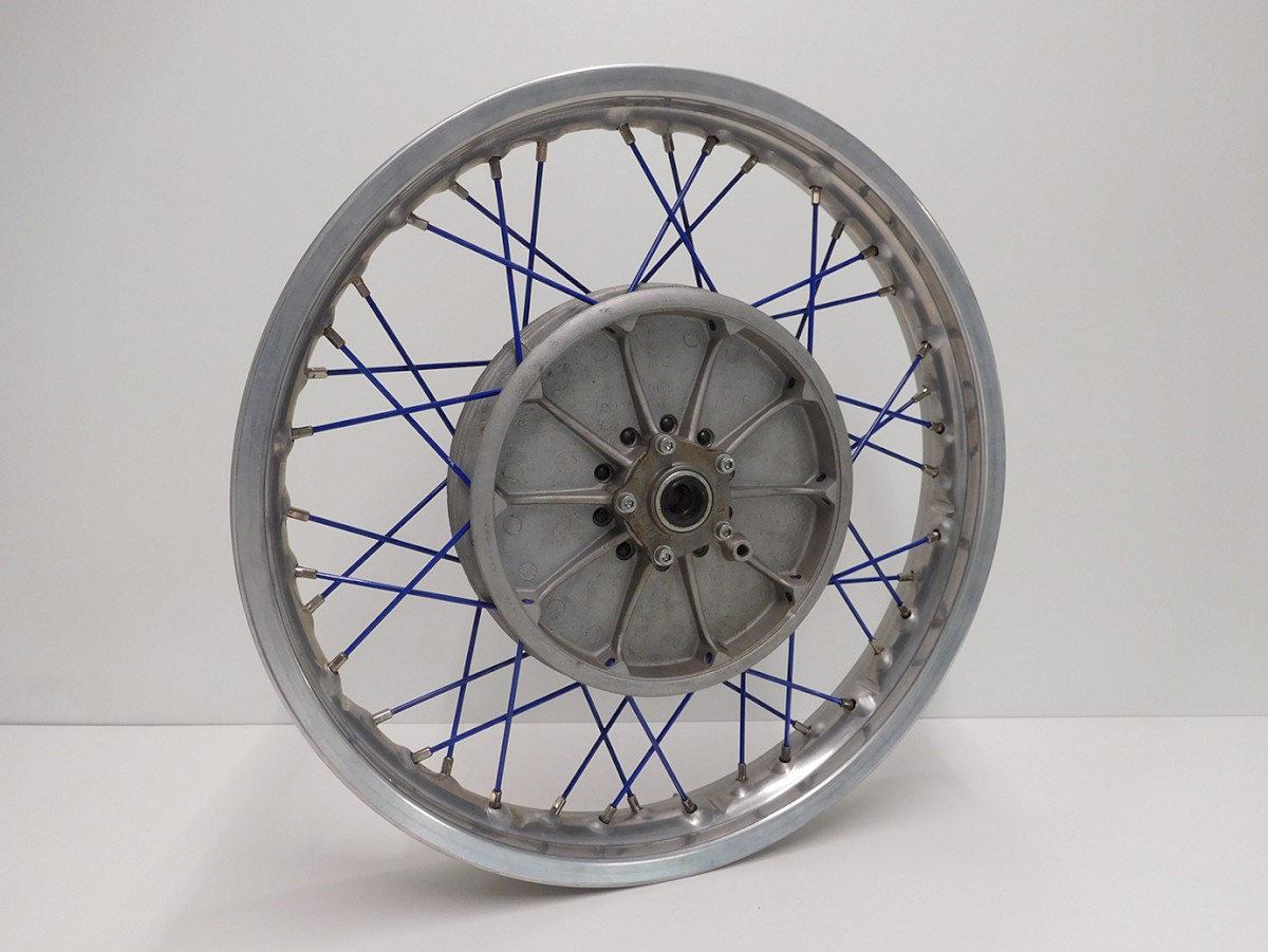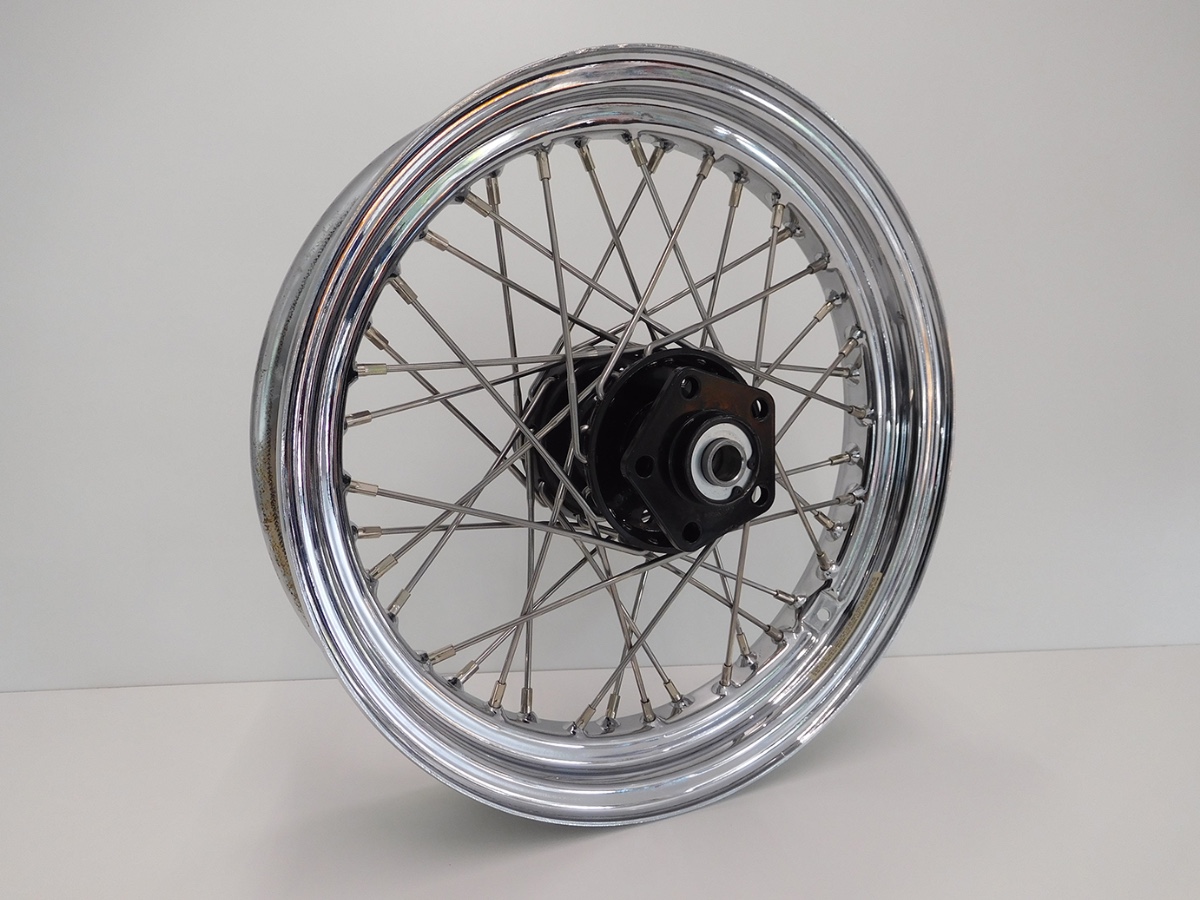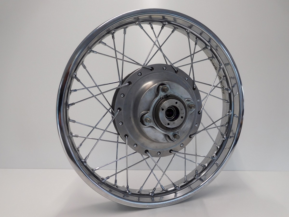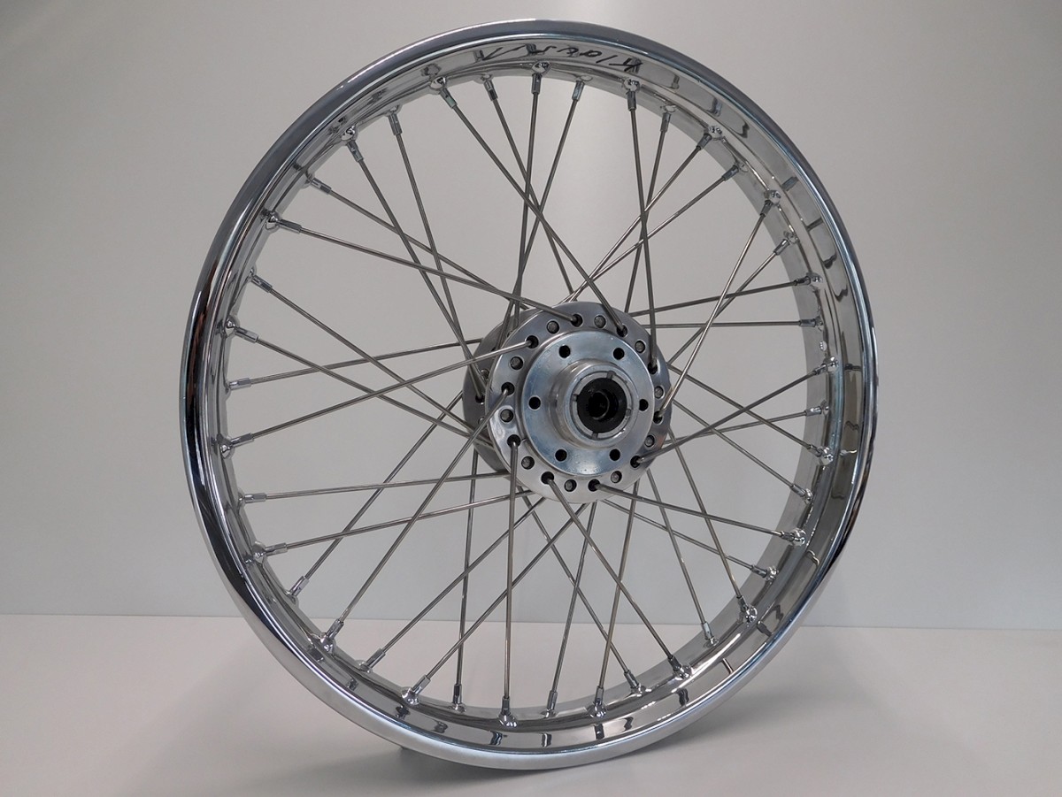 Lacing, by and large, is pure craftsmanship, apart from the assembly of the original. It generally takes place according to the specifications of the original. Special lacings in rebuilds with different rim sizes and widths can change significantly the spoke image. This is how the classic 40-hole Harley wheels are modified with 80-hole wheels, for example. Once the wheel has been spoked, it is tensioned and centred.