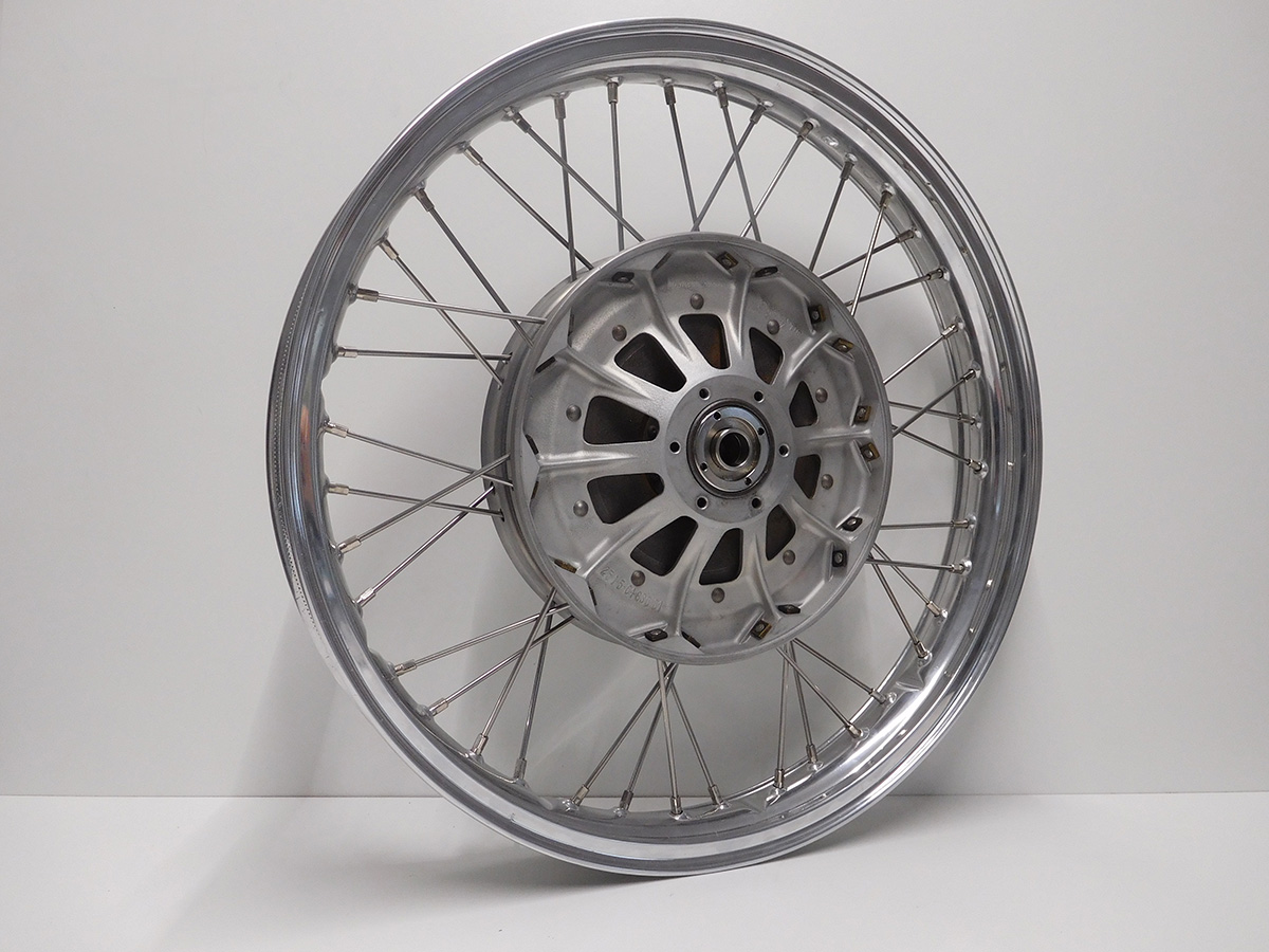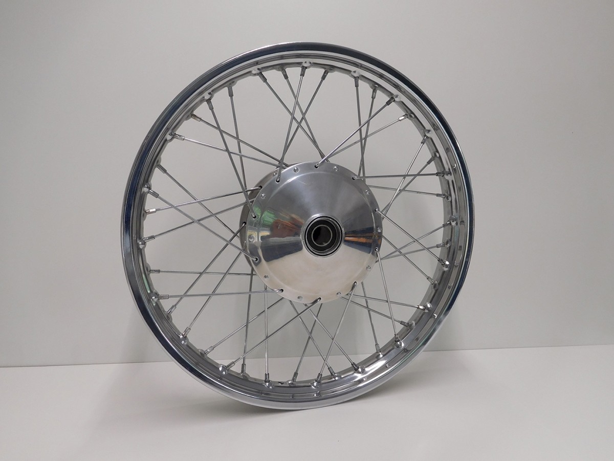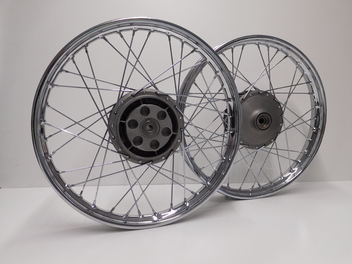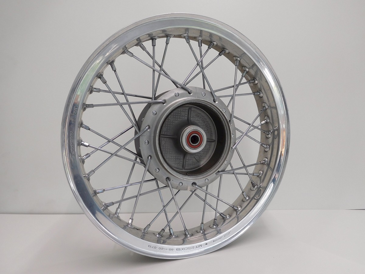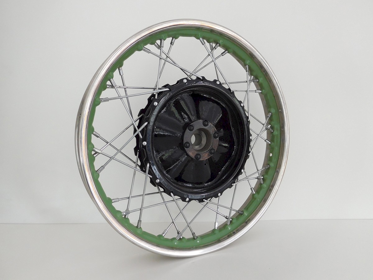 Lacing, by and large, is pure craftsmanship, apart from the assembly of the original. It generally takes place according to the specifications of the original. Special lacings in rebuilds with different rim sizes and widths can change significantly the spoke image. This is how the classic 40-hole Harley wheels are modified with 80-hole wheels, for example. Once the wheel has been spoked, it is tensioned and centred.