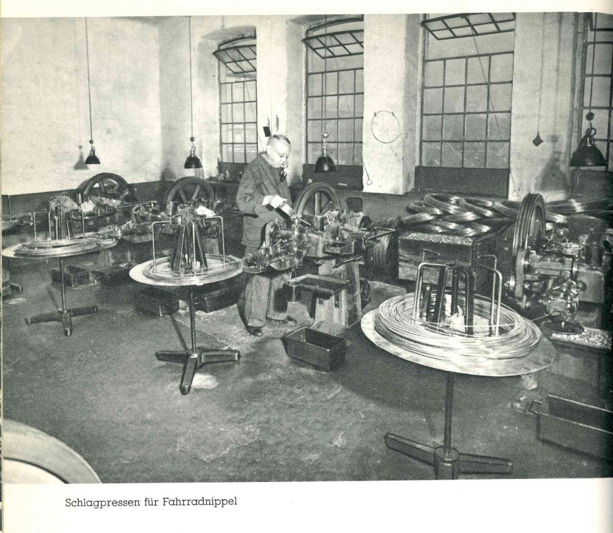 Dimples are the circular bumps in the rim that were common during the middle and end of the 20s. The dimples were used to install the spokes at larger angles in order to achieve more stability. Before dimples were used, the hubs tended to have a smaller design, so as to have the most even surface possible where the nipple exits the rim (so-called beaded rims). During a transitional period in the 1920s, the so-called Bibendum rims were invented, which became an intermediate solution between bead and drop centre rims.