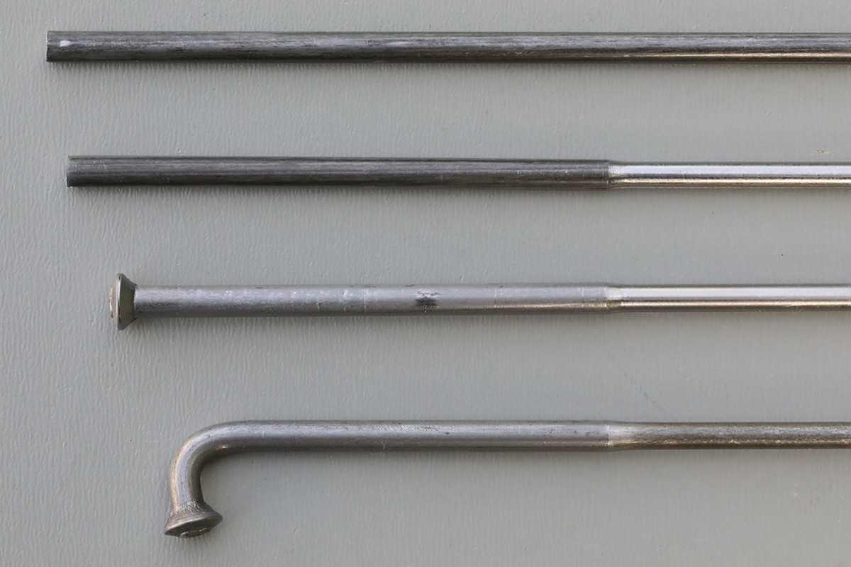 There are many different spoke shapes: Smooth spokes, single butted spokes, double butted spokes, twisted spokes, conical spokes, bladed spokes.
