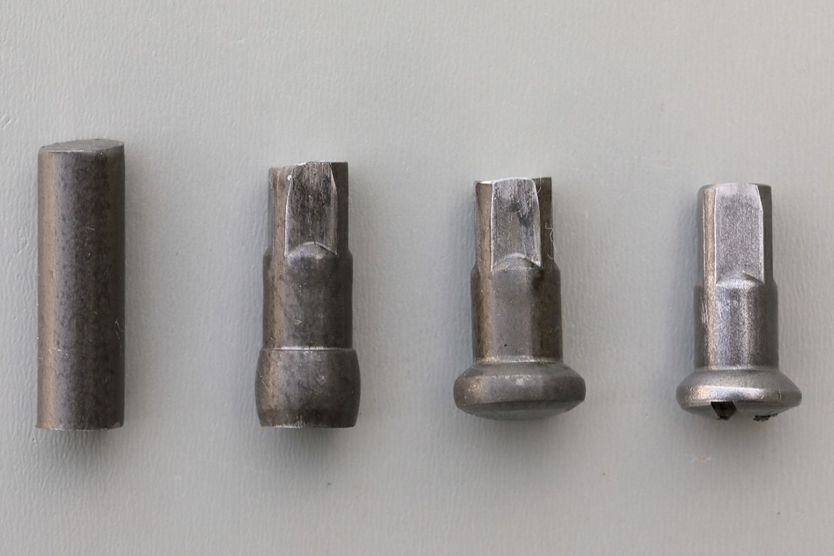 Spoke heads are provided by all manufacturers in a standard design with a 90° head angle.